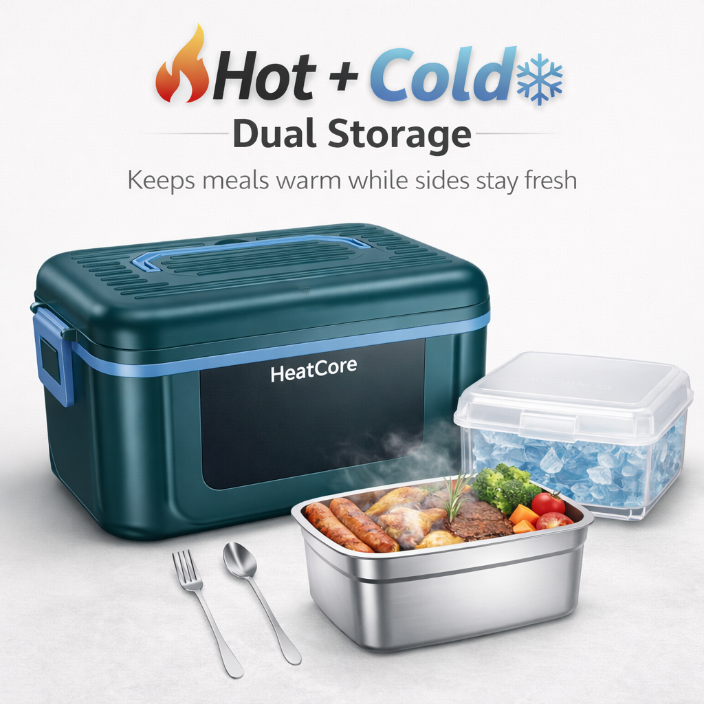 Yes! The HeatCore™ features dual-zone storage with a separate ice crystal compartment. Keep your main dish hot while storing yogurt, fruit, or drinks cold in the insulated ice compartment. Perfect for balanced meals.